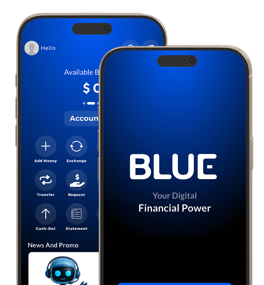 BLUE Wallet is a Multi Currency Digital Wallet that allows you to store funds, send and receive payments, and manage your BLUE card seamlessly from your mobile device.